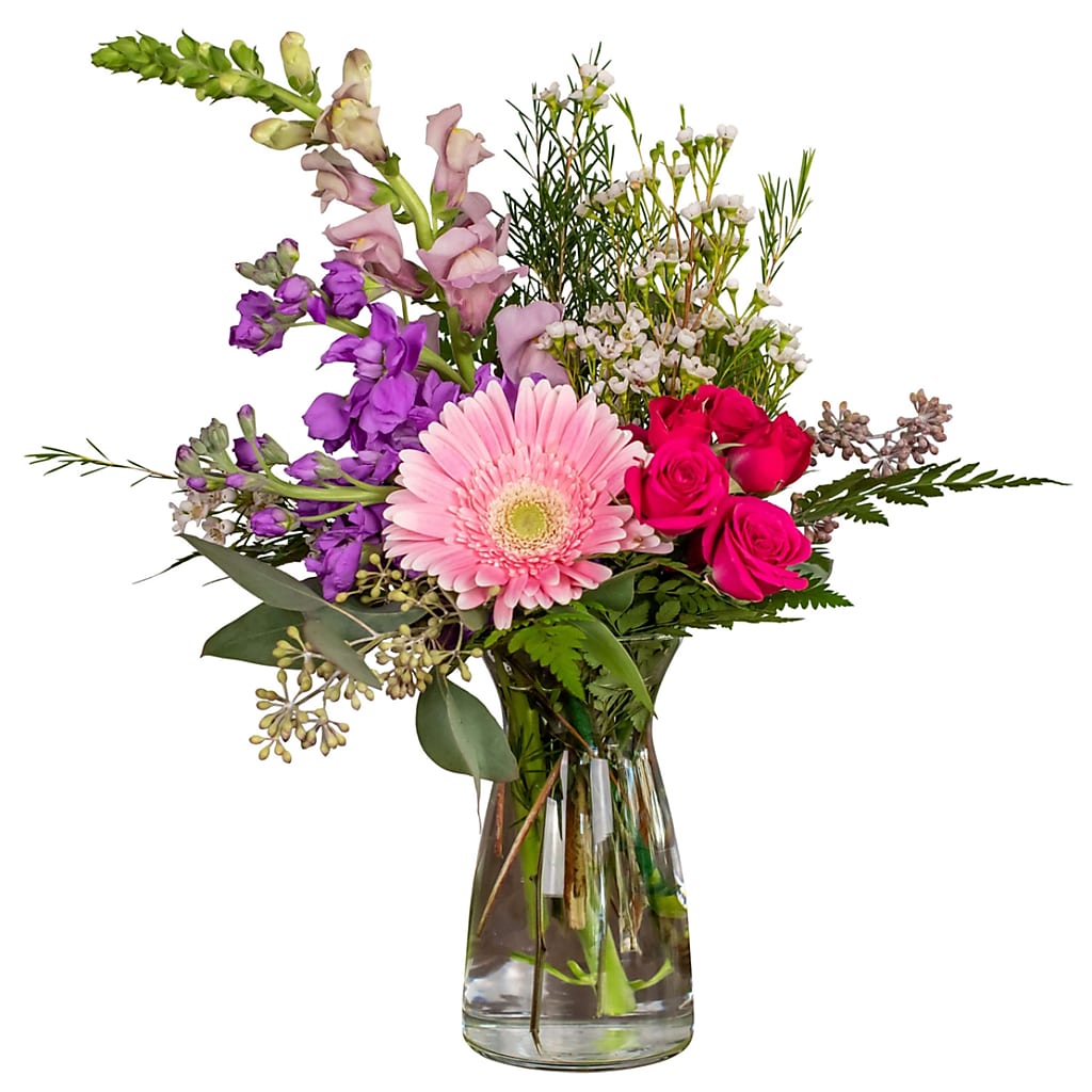 Delight in everyday joys. Daisy Delight inspires a fun, playful vibe. Flowers like gerbera daisy, stock, and snapdragons are whimsically arranged in our vibe vase.