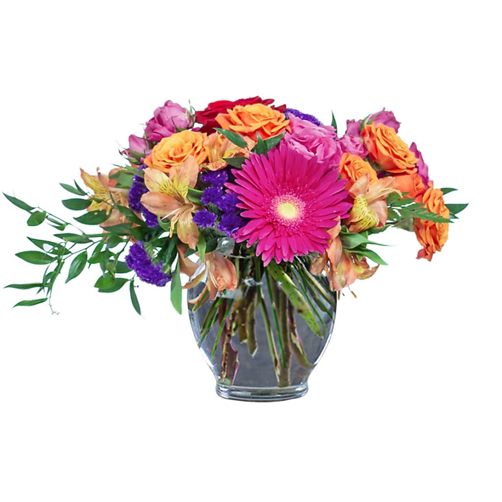 The world is your parade - embrace it. Daisy Parade is a colorful mix of love. A hot pink Gerbera Daisy, roses, and alstroemeria will have them walking in the sun.